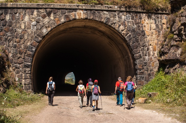 La obra alcanzó tal magnitud que se construyeron dos poblados, uno a cada lado del túnel, con sendas estaciones para el transporte de viajeros. En el punto más alto de nuestra ruta, a escasos 400 metros de la boca norte de “La Engaña”, alcanzamos una construcción que corresponde con lo que fueran los antiguos barracones. Al situarnos frente a sus muros y adentramos en ellos observamos con ojos curiosos los restos de azulejos, antiguos lavaderos y el entramado de habitaciones que albergaron durante 20 años la mano de obra de quienes trabajaron en el túnel.