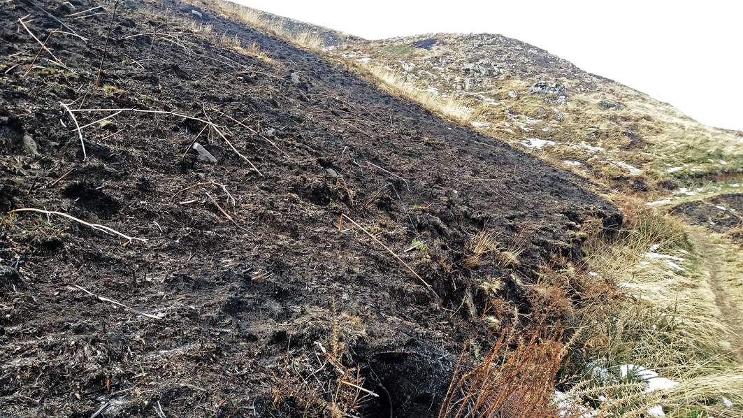 Ladera recientemente incendiada en San Roque de Riomiera, zona de enraizamiento de especies pirófilas