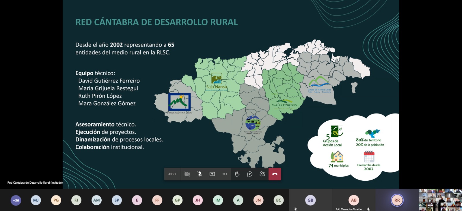 Además David Gutiérrez, coordinador técnico de la OTSR, ha participado en este evento realizando una presentación de todo el trabajo realizado por su departamento en el marco de la RLSC. Gutiérrez explicó las principales acciones desarrolladas en 2021 a través del convenio de colaboración que mantiene la Red Cántabra de Desarrollo Rural con el Centro de Investigación del Medio Ambiente, organismo del Gobierno de Cantabria que coordina la RLSC.
